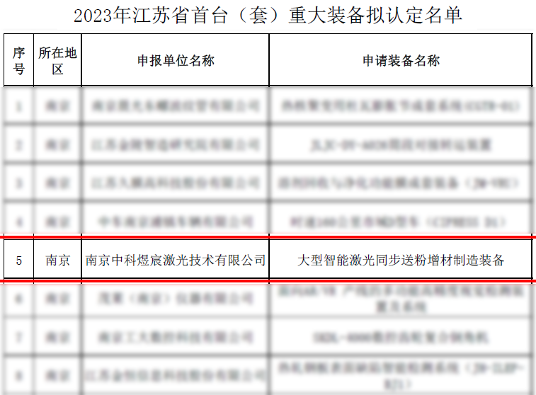 2023年9月4日,江蘇省工信廳對《2023年江蘇省首臺(套)重大裝備擬認(rèn)定名單》予以公示。中科煜宸的“大型智能激光同步送粉增材制造裝備”被認(rèn)定為江蘇省首臺套產(chǎn)品。(2018年,中科煜宸LDM8060金屬增材制造裝備獲江蘇省首臺套裝備認(rèn)定。)