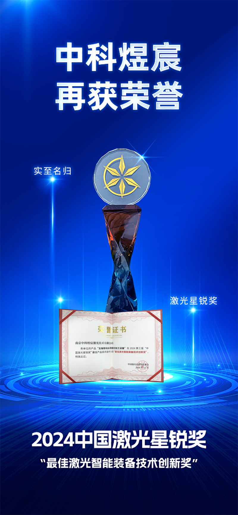 11月28日,2024中國激光星銳獎新鮮出爐,中科煜宸“五軸聯(lián)動水導(dǎo)激光加工設(shè)備”榮獲“最佳激光智能裝備技術(shù)創(chuàng)新獎”。